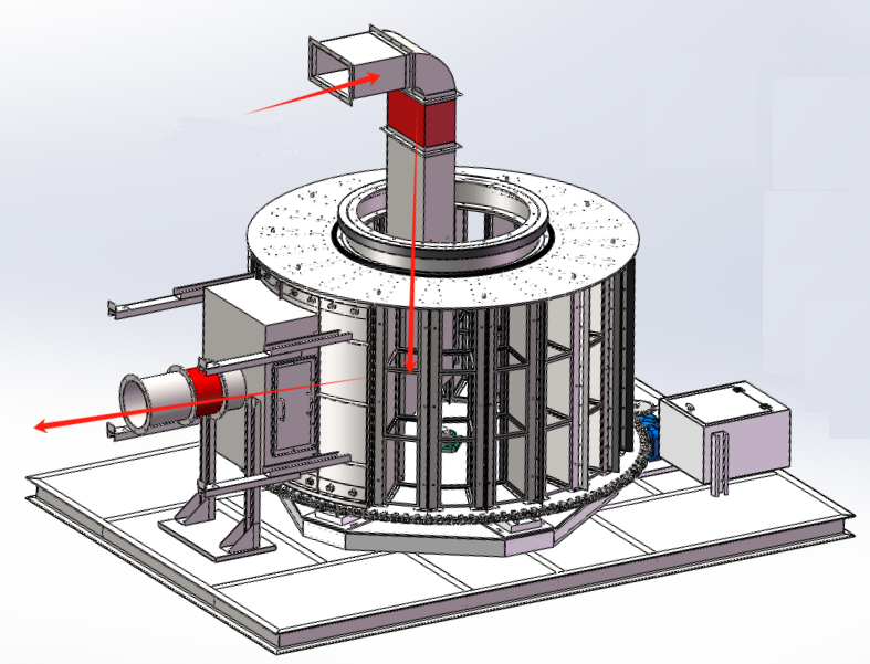 沸石轉(zhuǎn)簡一共分為3個區(qū)域:吸附區(qū)、脫附區(qū)、冷卻區(qū);運作時保持緩慢轉(zhuǎn)動,當(dāng)轉(zhuǎn)筒轉(zhuǎn)入脫附區(qū)后利用熱交換器加熱一股小風(fēng)量空氣,加熱至150*-200時,對沸石進行吹掃脫附,解吸再生;